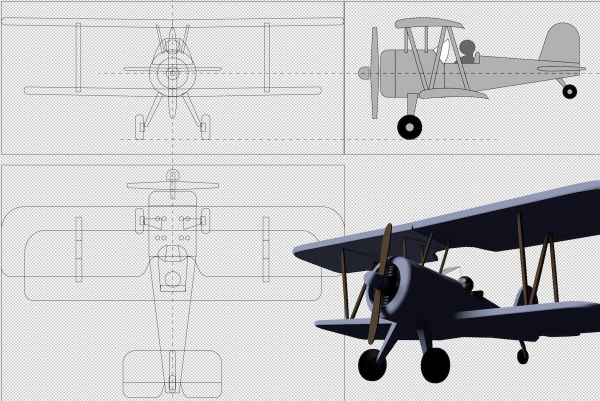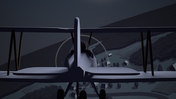 The construction of the biplane is designed more like a "dream aeroplane", seen through the eyes of a child: cuddly and without technical perfection. The biplane and its flight were realised in Cinema4D, rendered and staged in After Effects with ground and background.
