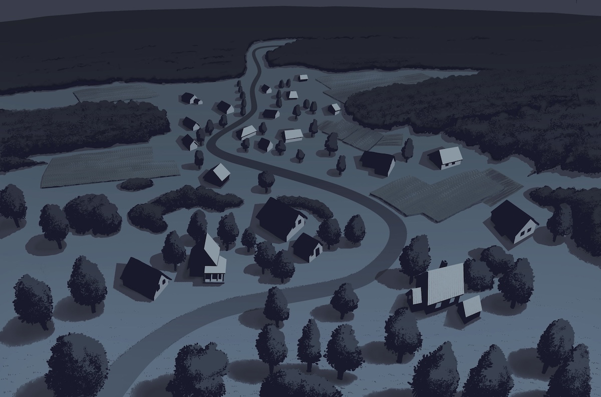 I planned the flight over the landscape in detail, then thought about what the airplane camera would see from the ground - and then drew it in perspective. In After Effects, I created the impression of the flight by scaling, rotating and moving the image.