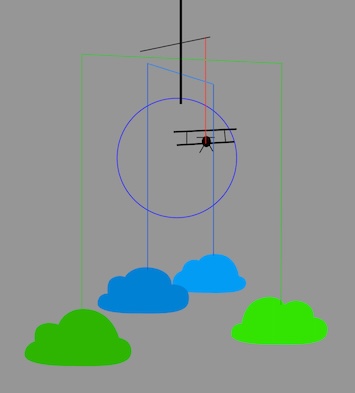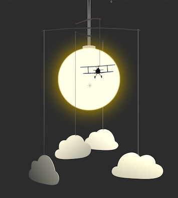 As a "master cloud", I colored the image of a single cloud, added effects - and then inserted it into the scenes in an alienated form. The crib mobiles has been realized in an elaborately constructed After Effects composition with animated 3D levels.