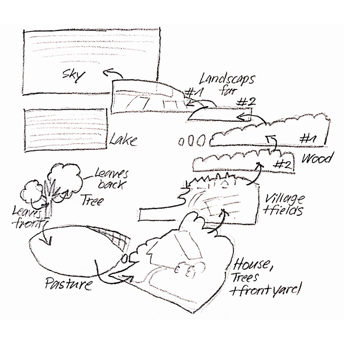 Set up of the scene parts for separate editing with effects in After Effects and some simply constructed and quickly made animations:
