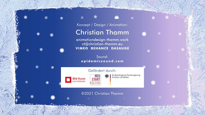 The icy pane is a montage of three different images, which I then processed with effects in Photoshop and After Effects until this little work of art was created.